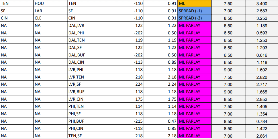 Cowboys (ML parlays)