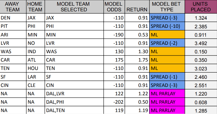 Similarly to last week, I will have a write up for each team the model picks alongside my personal opinion/rating on each pick.